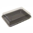 The clear PET high-dome lid (2-1/4" tall) adds extra space for frosted cakes, cupcakes, and taller desserts. It snaps securely onto the pan for freshness and protection while offering excellent visibility. Stackable and disposable, it’s ideal for bakeries, catering, takeout, and retail displays.